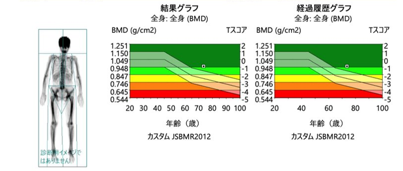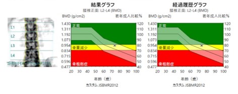 当院は腰椎の正面・側面の骨密度を測定し骨粗鬆などの診断を行います。