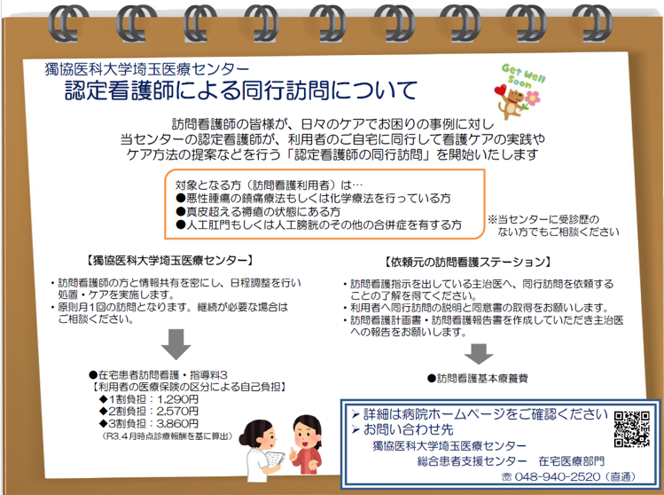 - 同行訪問看護終了後、当センター認定看護師より同行訪問報告書を作成し郵送します。