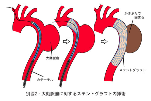 治療法に関しましては、患者様の大動脈瘤の位置や形態、また年齢や全身状態など十分考慮し、患者様と十分相談の上治療方針を決定させていただき、より良い医療を提供できるように尽力させていただきます。
