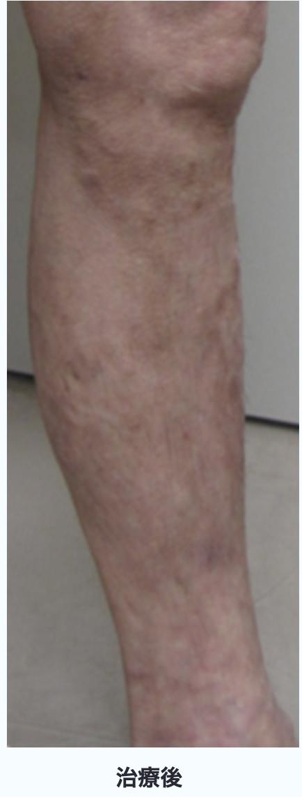 以上の治療は、静脈瘤のタイプを診断したうえで、単独もしくは組み合わせて治療を行い、治療の達成具合によって何度か治療を行うこともあります。