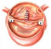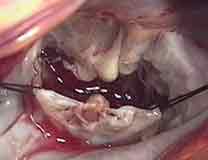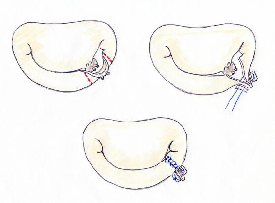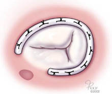 ほとんどの場合弁輪に「当て布」をして弁輪を縫い縮めることによって逆流を止めます。