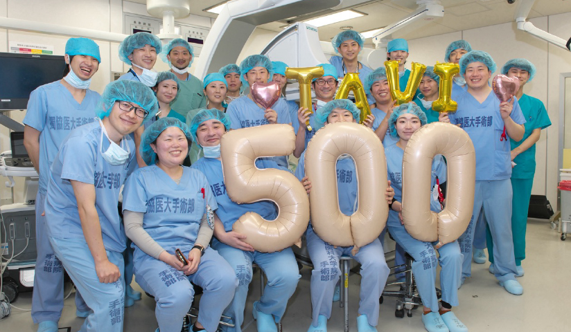当院は2015年にTAVIを開始し、治療開始から8年目となる2023年にTAVI専門施設として認定されました。さらに、開始から10年目の2025年には累計500例の治療を達成しました。今後もハートチームが一丸となり、地域医療へのさらなる貢献を目指して取り組んでまいります。
