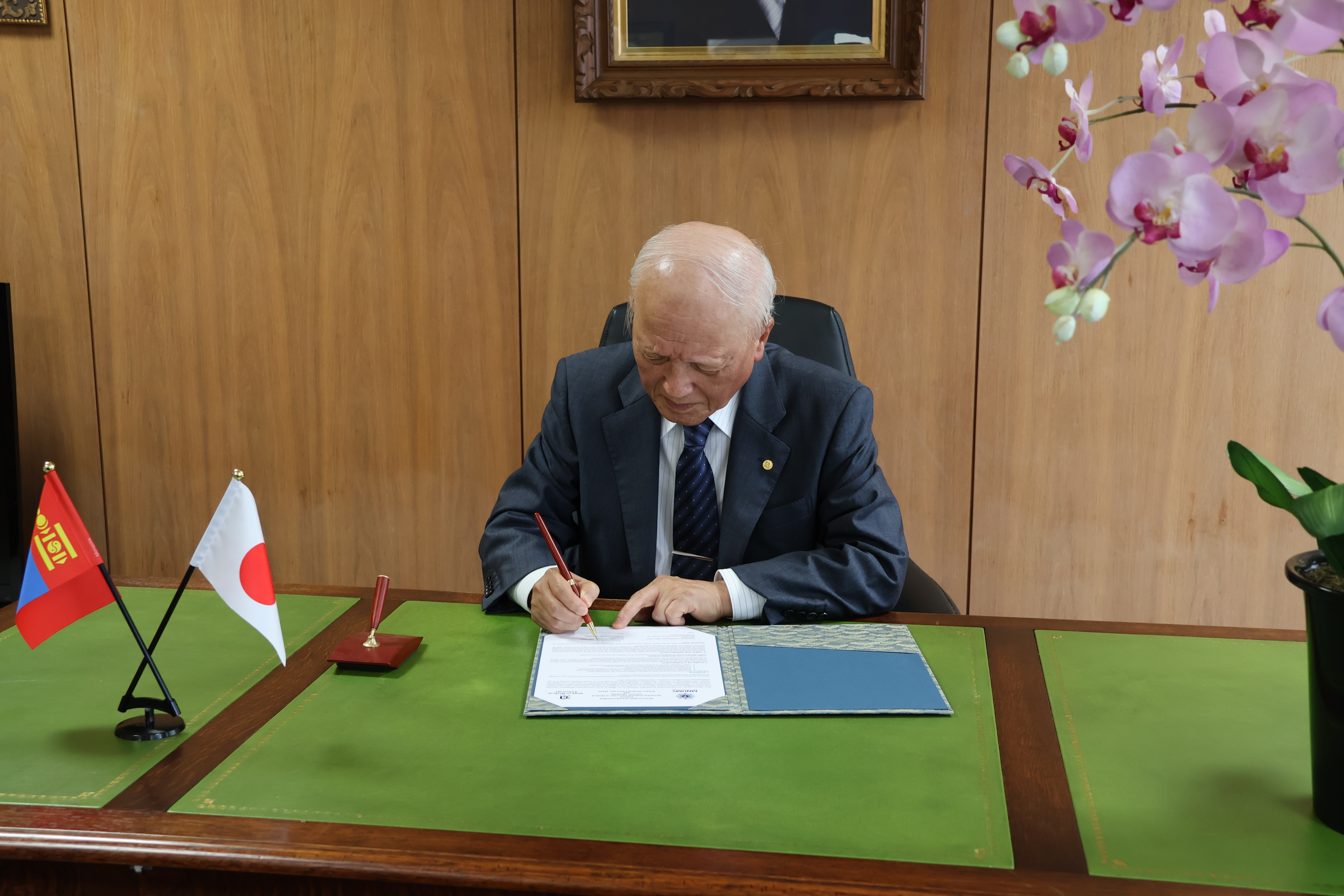 モンゴル国立医療科学大学との学術交流協定書に吉田謙一郎学長が署名し、郵送にて協定を更新いたしました。