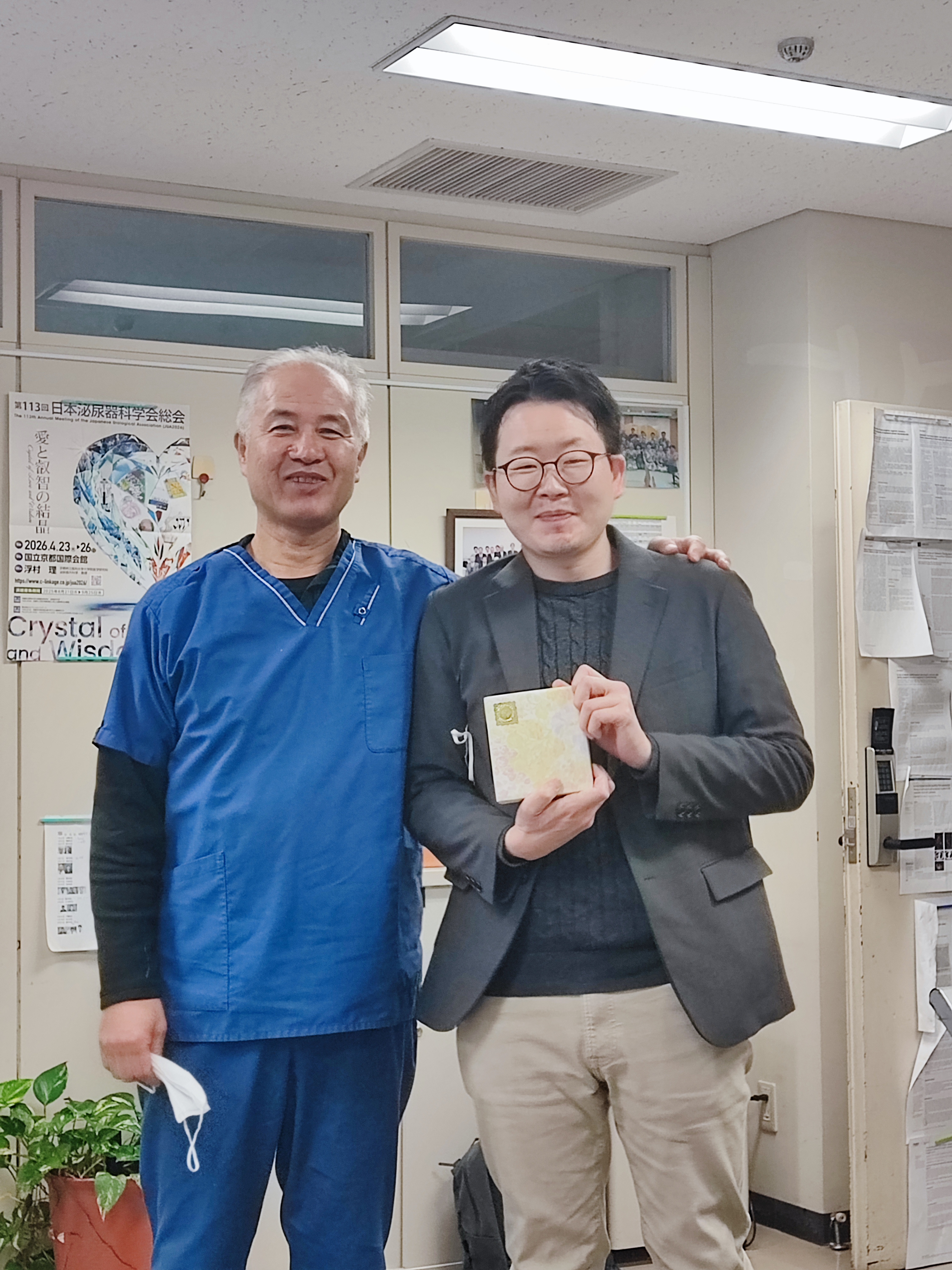 2026年3月末をもちまして、当医局の鈴木一生先生が退職され、4月より宇都宮市にて「うつのみやLA泌尿器科クリニック」を開院されることとなりました。先日、医局にて鈴木先生の新たな門出を祝し、ささやかながら開業のお祝いを行いました。医局からは、これまでの感謝と今後のご活躍を祈念して、記念の置き時計を贈呈いたしました。